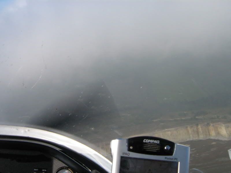 Nicht viel aber gut. Später sollte sich herausstellen wie geirrt wir uns doch haben. Wir starteten Richtung 27 als wir sahen (oder auch nicht), dass wir keine 5 km Sicht hatten. Der Wetterbericht sagte ebenfalls eine kräftige Inversion in ca 1400ft vorraus = Wolkenbasis.